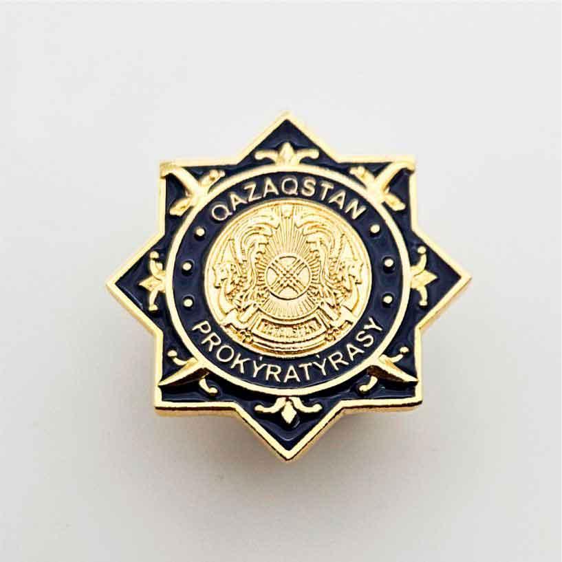 Каждый значок Qazaqstan Prokuraturasy изготавливается по технологии центробежного литья, проходит многоэтапную полировку, покрывается прочным гальваническим слоем и окрашивается вручную холодными эмалями для чёткого контраста и долговечности.